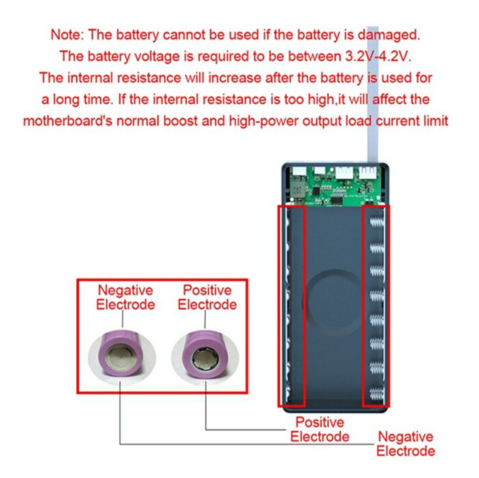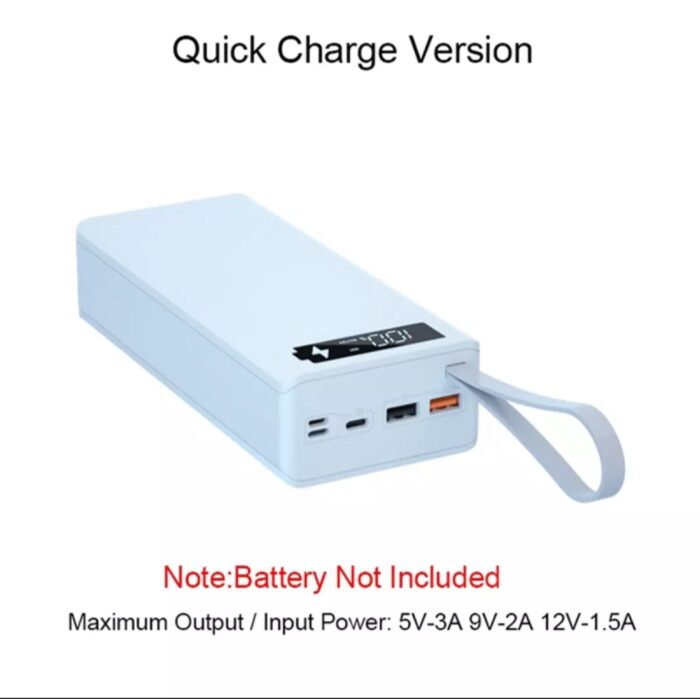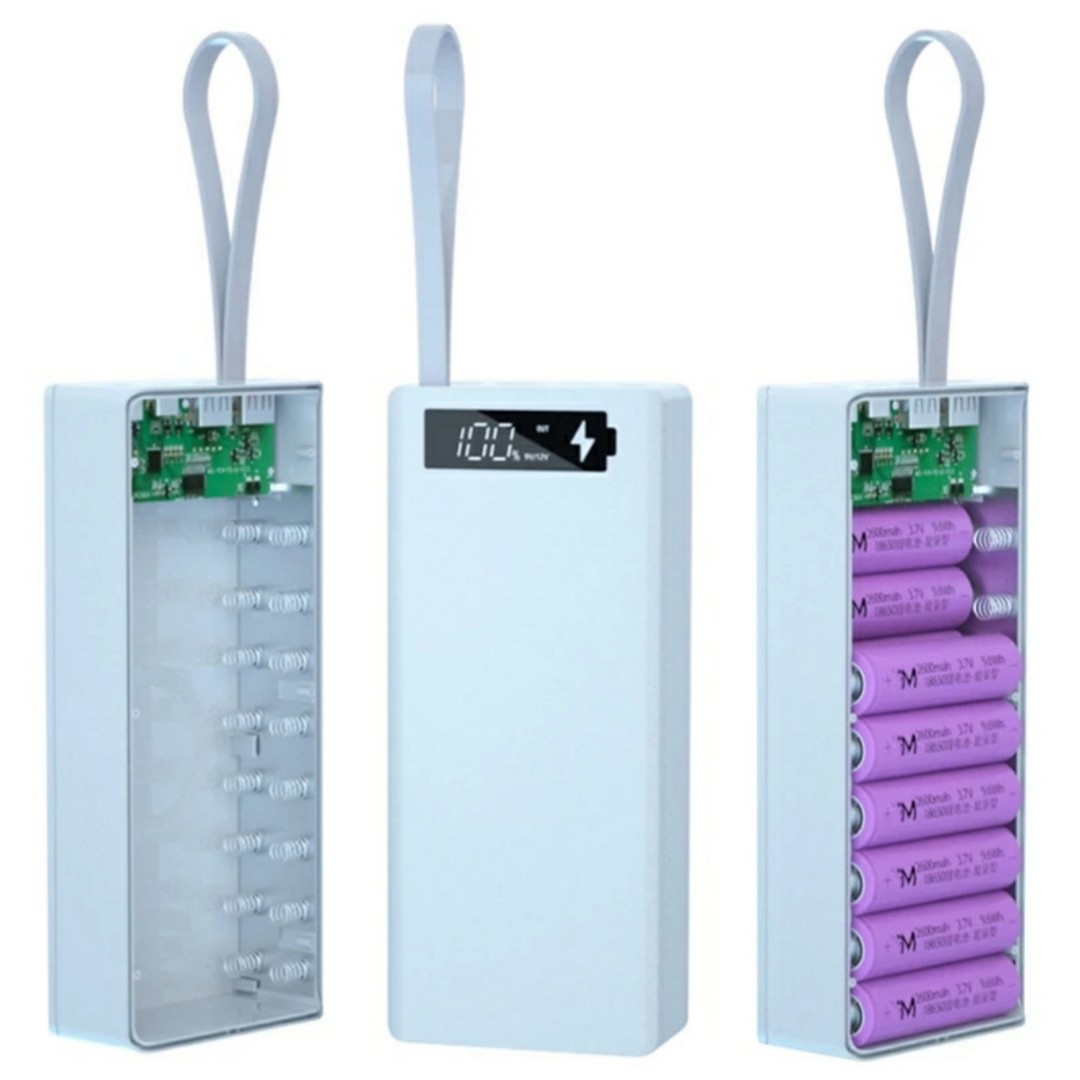• 16 Cell Power Bank Case Description Quick Charge Version Maximum Power: 5V-3A 9V-2A 12V-1.5ANote:Charging power depends on your device, for example: 9V-2A, if your device supports 9V-2A, then it will automatically jump to 9V-2A, if not, it will not jumpWith anti-reverse connection protectionNote:Only 18650 flat-head batteries can be used, and the voltage is in line with 3.2V-4.2V. You need to use brand new batteries. Old batteries and damaged batteries will cause failure to work, incorrect connection of positive and negative poles, and the first time you need to use the battery full