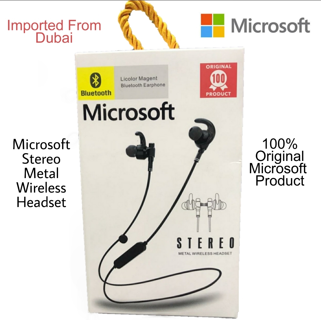 Microsoft Stereo Metal Wireless Blutooth Headset Licolor Magent Sports Magnetic Headphone Powerfull Bass Handsfree